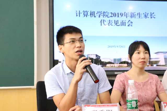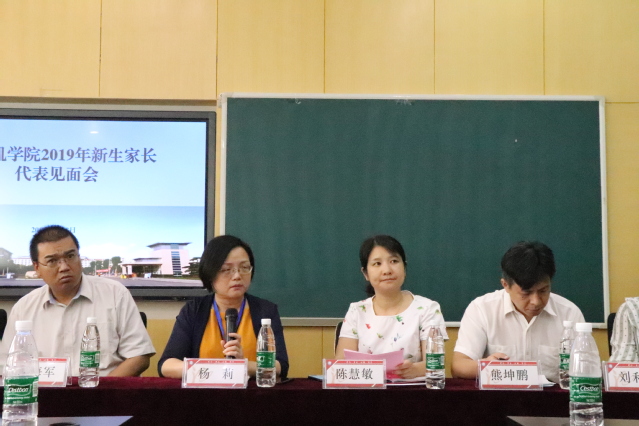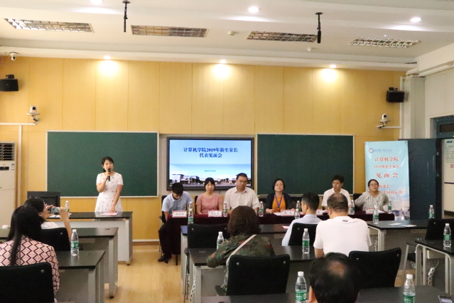 本网讯(通讯员 万玉琴)2019年9月8日上午9:30,计算机学院于实验楼S4413召开2019级新生家长代表见面会。学院院长杨莉、党总支副书记熊坤鹏、副院长王海军、学工办主任邓家桃、计算机科学与技术(中外合作)专业负责老师刘利敏、辅导员邓重阳出席本次会议。本次会议由学院党总支书记陈慧敏主持。