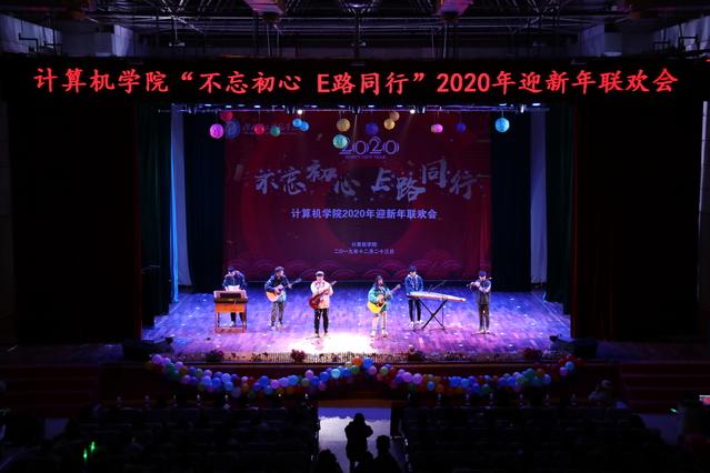 本网讯(记者 严宇轩)2019年12月23日晚6:30,计算机学院2020年“不忘初心,E路前行”迎新联欢会在学校大礼堂拉开帷幕。现场气氛热烈,座无虚席。