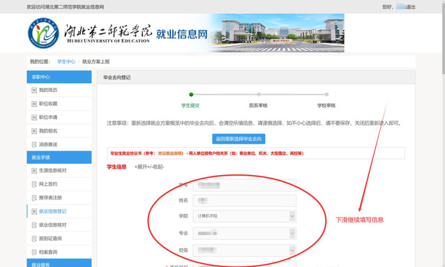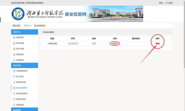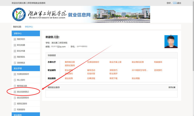 第四步:登录进入后,点左侧就业信息登记