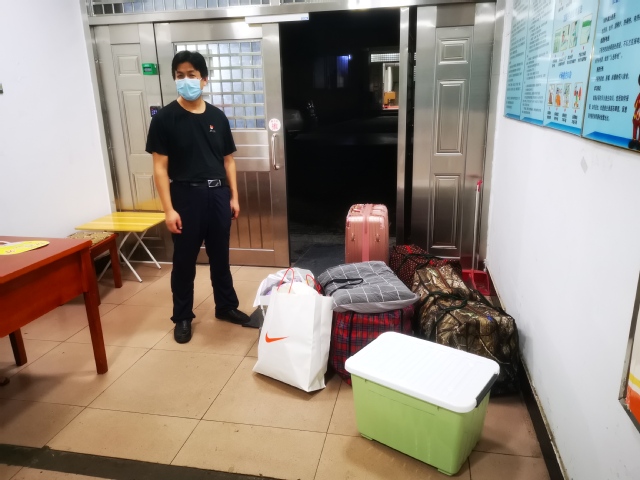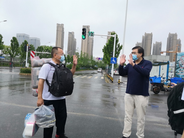 罗明泽与父亲20日顺利返校,申请留宿一晚。经过一晚收拾整理,21日一早,已经打包好大小行囊,办理好离校手续后,准备离校乘地铁赶往汉口火车站,乘坐下午的高铁回老家黄冈麻城。负责“一对一”协助罗明泽办理离校手续的副院长王海军此时正在宿舍巡查,了解毕业生们是否需要帮助,看到罗明泽跟父亲扛着不少行李准备出发,天又下着雨,王海军主动提出自驾车送他们到最近的地铁站。