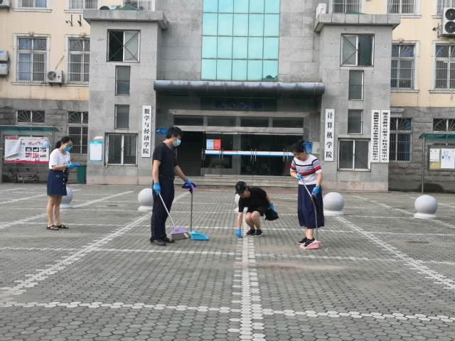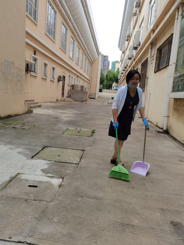 6月17日下午,学院分党委书记陈慧敏、院长杨莉亲自带头,带领已经正式返岗复工的近20名老师一同上阵,打扫10号教学楼周边区域及西一和西六两栋宿舍楼,为即将返校的毕业生打造整洁温馨校园。