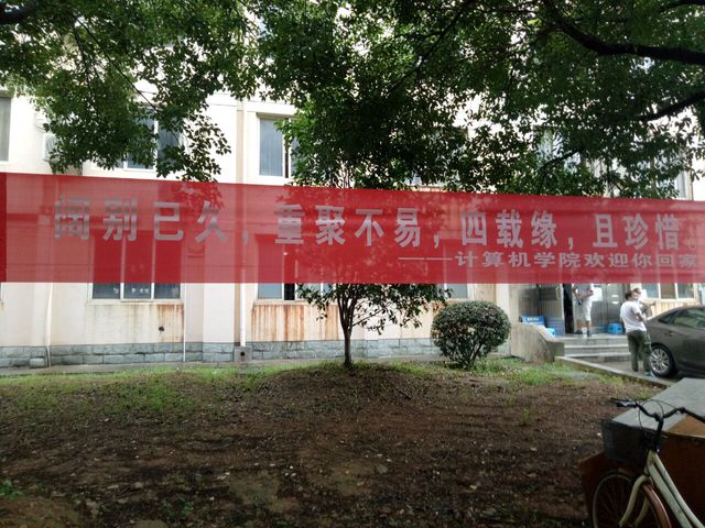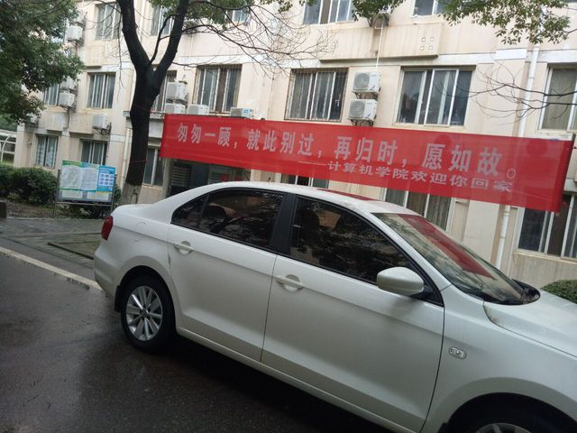 而在学院西一和西六两栋宿舍楼前,有一对横幅标语,是老师们对毕业生的欢迎,也是深深的不舍。
