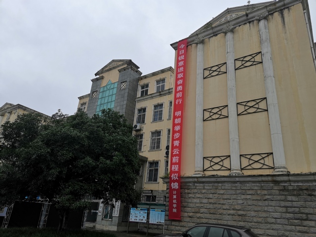 10号楼另外一侧,悬挂着一条条幅,载满了学院全体老师对毕业生的殷切期待:今日锐意进取奋勇前行,明朝举步青云前程似锦。