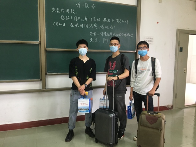 在办理离校手续和领取各类证书的教室,黑板上是一张特殊的请假条。是学院全体毕业生向学院的请假条,假条最下方,老师郑重地签上了“同意”!