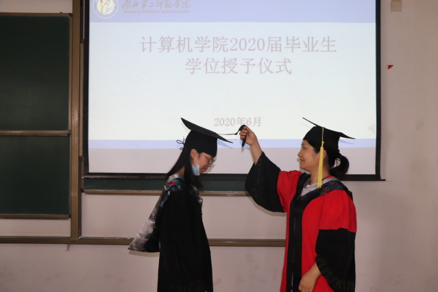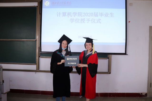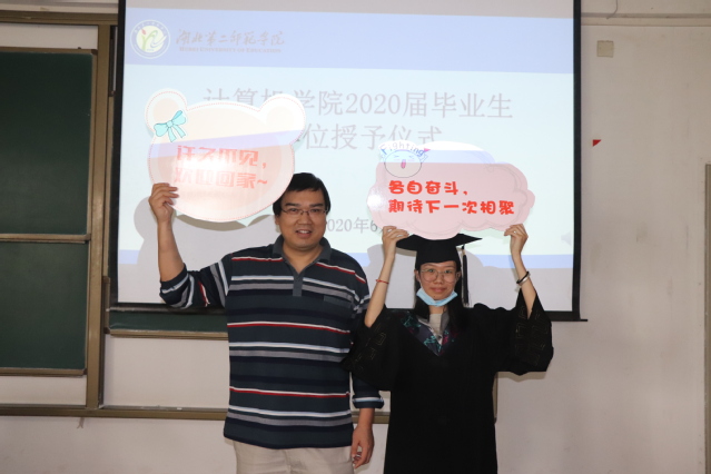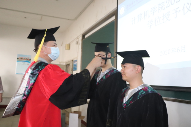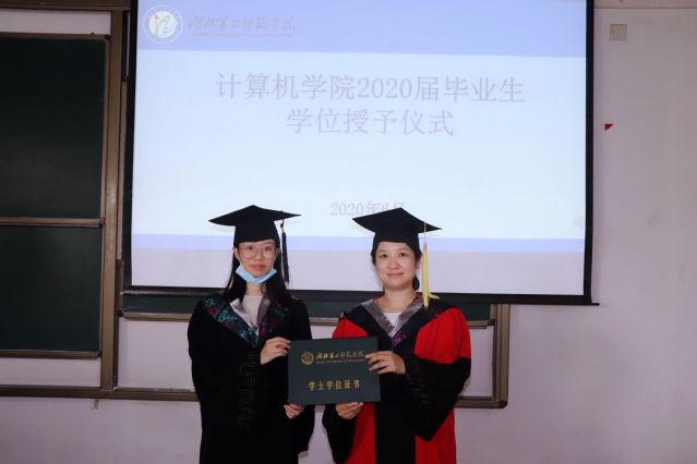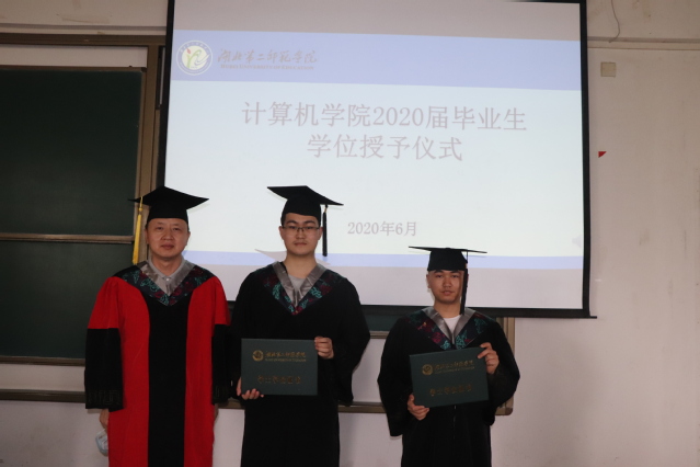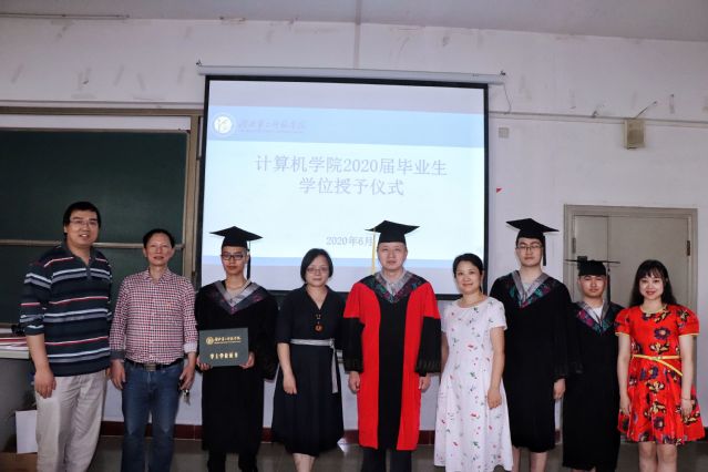 副校长胡兴等为毕业生授予学位并合影。