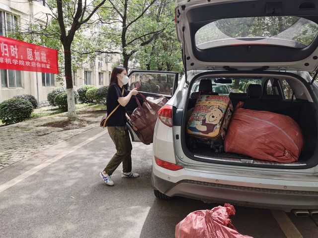 27日一早,杨莉联系了自己负责“一对一”联系的5名毕业生,问清楚返校具体时间点,便开始边工作边等待毕业生返校。9点半,杨莉便同副院长杨鹤、计算机科学系系主任余良俊、教学办老师樊迪、曹晓明、辅导员陈婧等到达西区六栋学生宿舍楼,帮助当日返校的毕业生整理打包和转运行李。