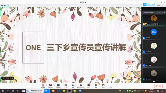 本网讯(记者万海霖周小满)7月21日晚七点,2020年暑期三下乡活动安全及宣传培训会以线上方式正式召开。计算机学院活动负责人肖沫晔、工作组负责人余佑双、任章瑞,2019年暑期“三下乡”成员罗娅及2020年暑期三下乡活动已报名成员共同参与本次会议,余佑双担任本次会议主持人。