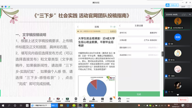 宣传培训过程中余佑双重点讲解了宣传稿件撰写细节要求以及多种平台的投稿事项。随后,2019年暑期三下乡活动成员罗娅进一步讲解宣传过程中可能遇到的问题,她结合2019年的工作经验,重点就撰稿要求、投稿平台的选择等问题进行了详细的介绍。
