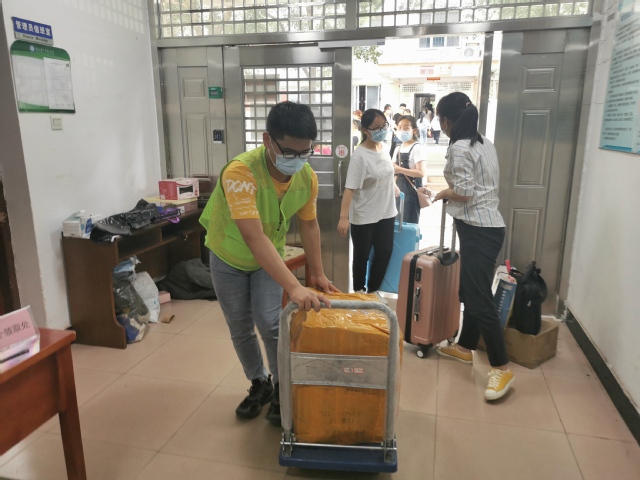 本网讯(记者 曽嘉怡 戴佳伟)“你等等,我在宿舍,马上就来!”计算机学院19级软件工程专业孙钰接到一个电话,开始往学校北门飞奔。他是学院同学互助志愿队的一员,现在要赶到学校门口去帮一名同学搬运行李到宿舍。