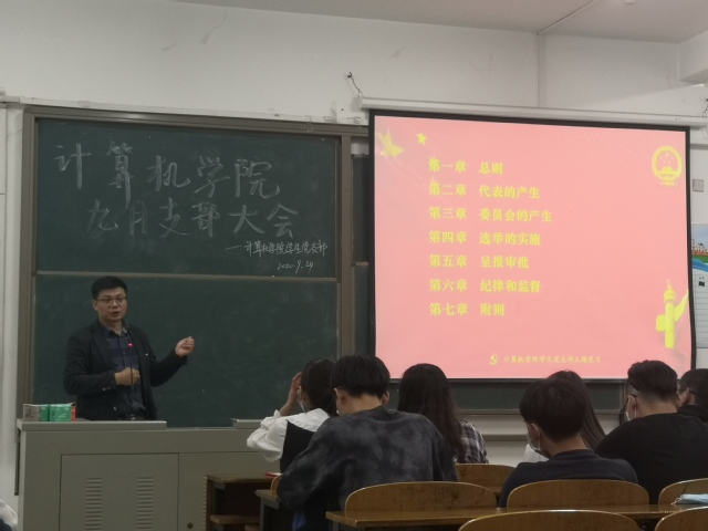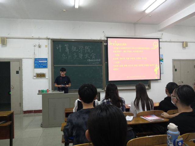本网讯(通讯员 严紫云 余慧君)9月24日晚六时,计算机学院学生支部全体人员在三楼会议室召开支部大会。学院党委书记陈慧敏、副书记熊坤鹏、学生党支部书记邓家桃、熊军平,全体辅导员和学生党员参与此次会议。