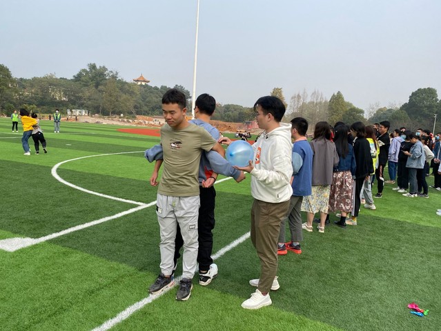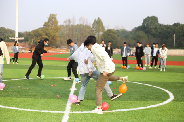 活动设置了多个互动协作游戏,有夹传气球、解套、五毛一块、吹气球和互动游戏“反动作”。现场看到,夹传气球项目中,同学们两两一组背靠着背,手拉手夹起气球往终点一路狂奔。有的配合默契,有的中途掉了气球,惹的周围同学捧腹不已。吹气球项目区域,传来一阵阵气球吹爆的“嘭嘭”声,吓的胆小的同学躲出老远。