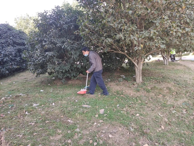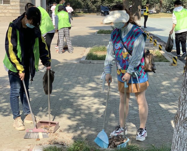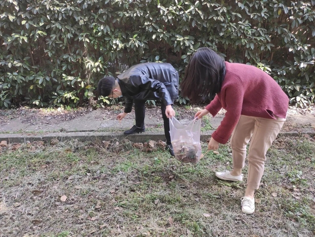 12点半,队伍集合完毕,师生分成三组分别前往十号楼前后区域、崇远路和百樟路、笃行大道南段清扫,将路上和草丛里的白色垃圾、烟头等仔细清理,把路面上大片的树叶清扫干净。