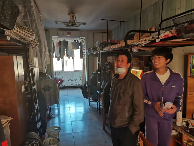 本网讯(通讯员 蔡蕾)11月12日下午,计算机学院“寝风督察工作队”开展“寝风建设暨团员之家创建”——每周卫生、安全大检查工作持续开展。学院党委副书记熊坤鹏、学工办主任邓家桃带领全体辅导员、部分入党积极分子及团学骨干进入学生宿舍检查卫生和安全情况。