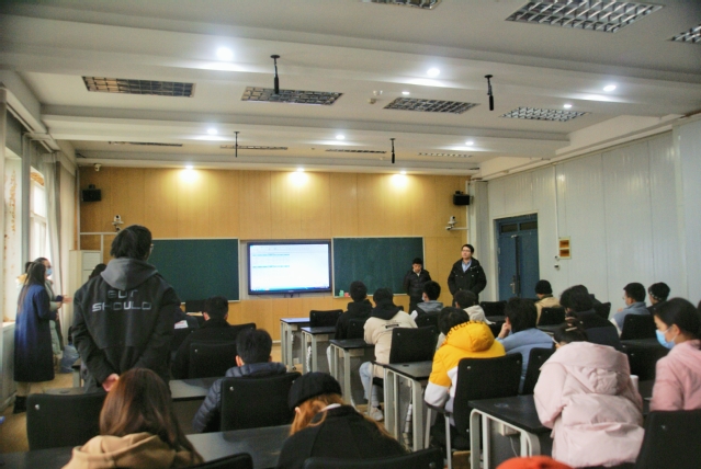 本网讯(记者 李鑫)12月18日下午两点,第四届方正璞华金种子班开班仪式在实验楼智慧教室s4413举行。公司代表谢东霖、计算机学院教学办曹晓明、18级计算机科学与技术日语双学位班辅导员邓家桃以及18级计算机科学与技术日语双学位全体同学参与本次方正见习线下见面会。