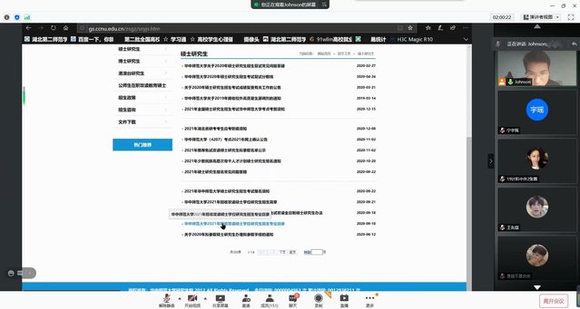 本网讯(通讯员 张晴格)1月11日晚上七点,学院开展了线上考研、考公、考编等经验及技巧的分享会,帮助同学们解开考研、考公、考编方面的困惑。本次分享会通过腾讯会议以线上形式进行,主讲人是计算机学院辅导员邓重阳,参会者大部分是来自学院19级的同学们,以及部分团学骨干。