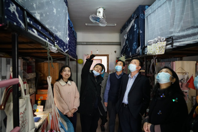 随后,胡兴又走访了西区一栋女生宿舍,他积极肯定了宿舍环境卫生,表示室内整洁干净,要继续保持,把宿舍打造成环境好、关系融洽、学习氛围浓厚的学习生活空间。