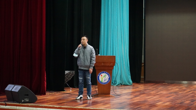 学院辅导员杨戌主持讲座(摄影 王金凤)