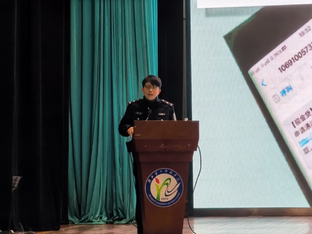 首先,郑警官为学生介绍了去年电信诈骗的警情,并且指出19到35岁人群是最易受骗的群众,提醒广大学生提高警惕;其次,郑警官讲述了公安在防电信诈骗方面做出的努力,如已在辖区内管控“实名不实人”的电话卡、银行卡等;随后,郑警官还为学生介绍了一些常见的诈骗套路,如网络刷单、套路贷、网购类骗局、网络招嫖等,提醒学生注意不要上当受骗。