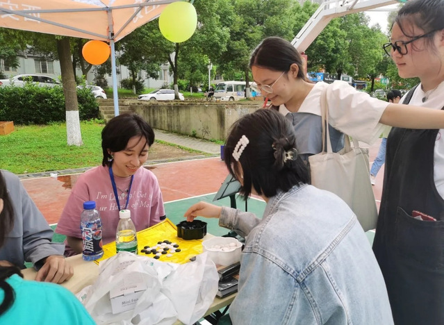 本活动设置了多个互动协作游戏,首先是“丸霸无双”,由计算机学院心理协会提供游戏和键盘,参与者可采取两两对战或与协会成员对战的方式进行比赛;第二个游戏就是“音乐擂台”,以协会成员播放歌单、参与者猜歌的方式进行,偶尔也提升难度通过协会成员刘梦晨用尤克里里弹奏的方式或朗诵歌词的方式进行出歌,五首中猜对了三首就能获得手账本一个,这个游戏颇受女孩子的欢迎;第三个游戏是“谁是卧底”,适合多人游戏,同学们参与度很高,反响良好;第四个游戏是“棋牌天下”,该项目为与心协成员进行五子棋和象棋对决,本游戏受到了爱动脑筋的同学的欢迎,还引来许多同学的观战。