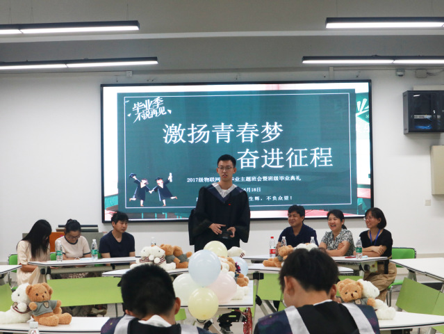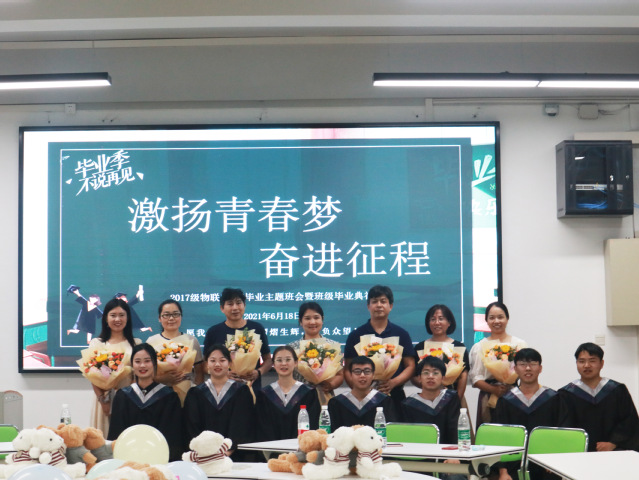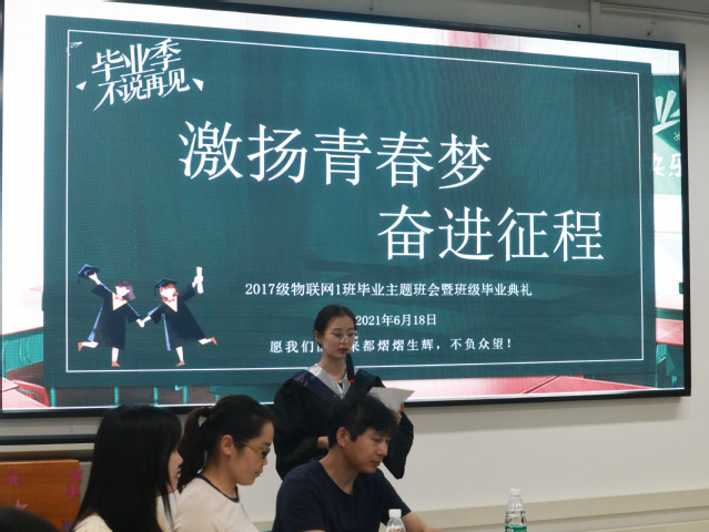 本网讯(记者 张智琪)6月18日中午,计算机实验教学楼S4112多功能教室里一片欢乐,计算机学院2021届物联网班毕业班会在这里召开。学院党委书记陈慧敏、副书记熊坤鹏、副院长杨鹤、辅导员陈婧、学院教室刘志明、余良俊、许芷岩受邀出席,班级大部分同学到场。
