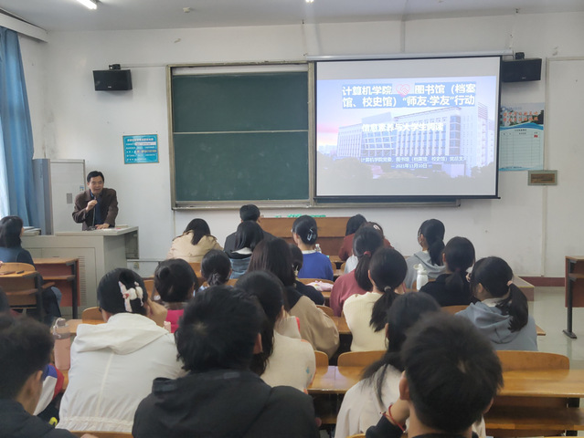 本网讯为了帮助新生更快地熟悉学校图书馆,培养学生良好的阅读和学习习惯。11月10日下午,计算机学院2021级教育技术学1班学业指导暨图书馆“师友·学友行动”在十号楼106教室顺利进行。学院党委书记陈慧敏、图书馆党总支书记施应贵、图书馆馆长彭敏及副馆长曾涛、学院分党委副书记熊坤鹏、学工办主任邓家桃、图书馆卢连梅老师和秦艳姣老师,以及21级教育技术学1班全体学生参加了此次活动。