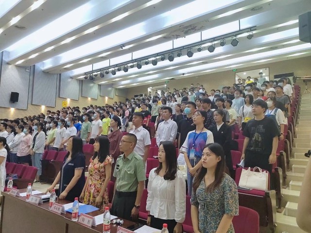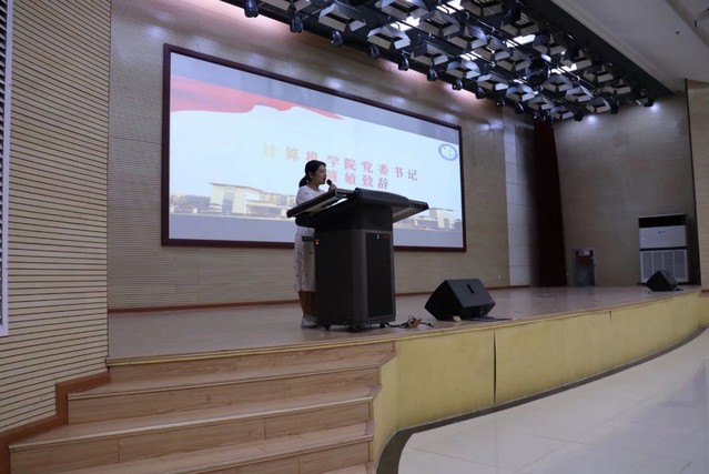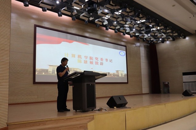 全体起立奏唱国歌后,计算机学院党委书记陈慧敏发表致辞。陈书记对新生的到来表示热烈欢迎,并勉励同学们心怀远大理想、树立终身学习的理念、养成健康生活方式,用奋斗书写青春的精彩华章。