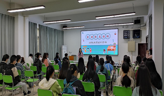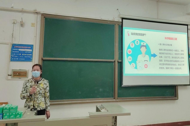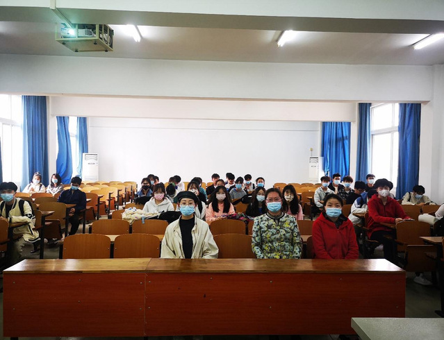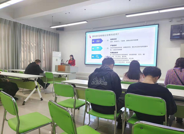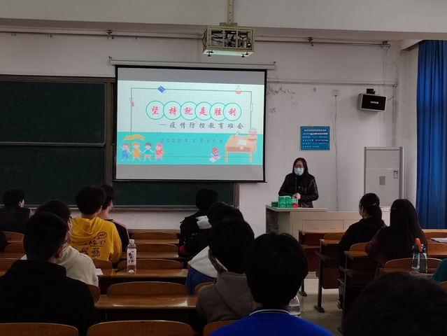 图为郑国媛老师正在给21级同学开疫情防控主题班会