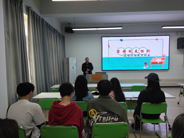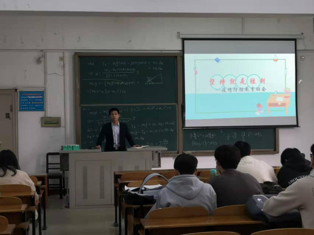图为冯诚老师正在给20级同学开疫情防控主题班