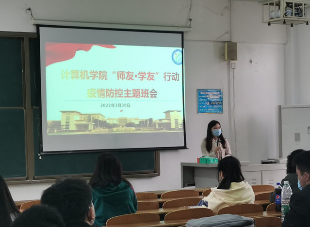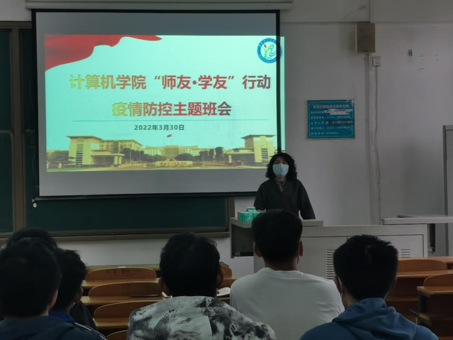 本网讯(通讯员 任京)为凝聚抗“疫”信心、传递战“疫”能量,3月29日至30日,计算机学院“师友·学友行动”联系单位图书馆(档案馆、校史馆)、信息化办公室领导老师以及计算机学院领导班子、教师、全体学工辅导员老师深入学院49个班级,开展2022年春季疫情防控主题教育活动。