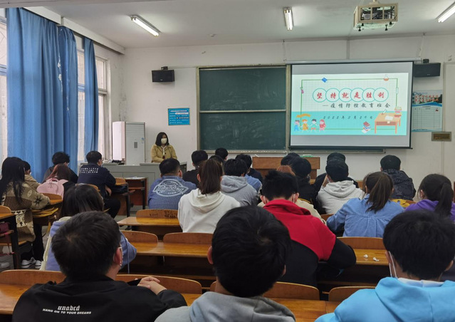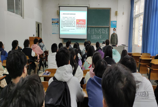 图书馆党总支书记施应贵深入2021级计算机类2班,召开疫情防控主题班会。施书记分析了当前疫情防控形势,介绍了我国在抗击疫情方面取得的伟大成就,并详细解读了抗疫精神的深层内涵。他号召同学们务必提高思想认识,增强大局意识,充分认识疫情防控的重要性和必要性;做好自我防护,勤洗手、多通风、戴口罩、勤消毒,做好常态化疫情防控准备;积极响应学校疫情防控管理规定,严格遵守学校疫情防控要求,做平安健康校园的忠诚守护者。