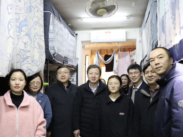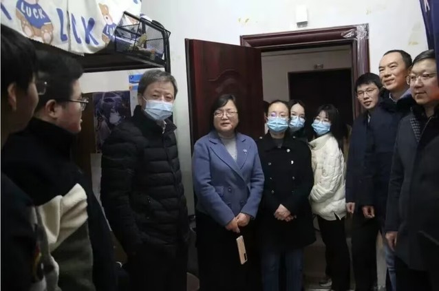 本网讯(通讯员 王凯瑞)2月19日下午4点,校党委常委、副书记胡兴,学院“师友·学友行动”联系单位领导、人事处处长张赟、信息化办公室主任李波、副主任熊坤鹏、学院党委书记陈宇、院长杨莉携班子成员和学工团队一同深入学生宿舍,走访问候返校学生。