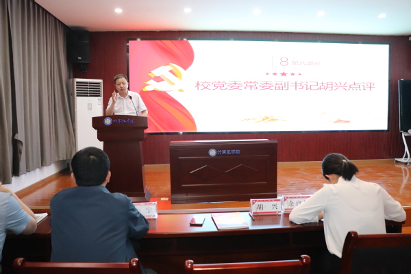 (通讯员 任京 王凯瑞)4月20日晚,计算机学院教师第一党支部和学生第一党支部联合在实验楼S4210开展支部主题党日共联共建暨“师友·学友”活动。校党委副书记胡兴出席,计算机学院10余名教师党员及70余名学生党员参加会议,活动由全国样板党支部——计算机学院学生第一党支部书记邓家桃主持。