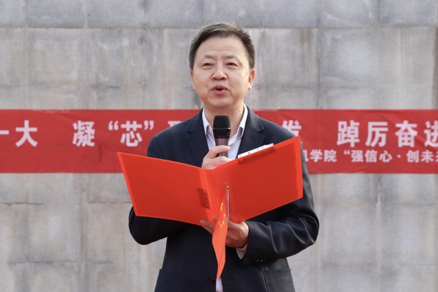 本网讯(通讯员 任京)5月8日早上,计算机学院在学校综合运动场国旗台开展“党旗领航”行动之“学思践悟二十大·凝‘芯’聚力再出发·砥砺奋进新征程”五四特别主题教育暨“国旗下的讲话”活动。校党委副书记胡兴出席活动,人事处、信息化办公室等“师友·学友行动”联系职能部门领导参加活动,活动由计算机学院团委负责人郑国媛主持。