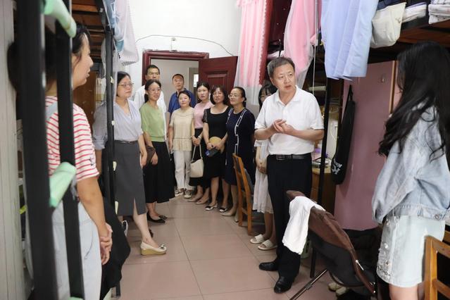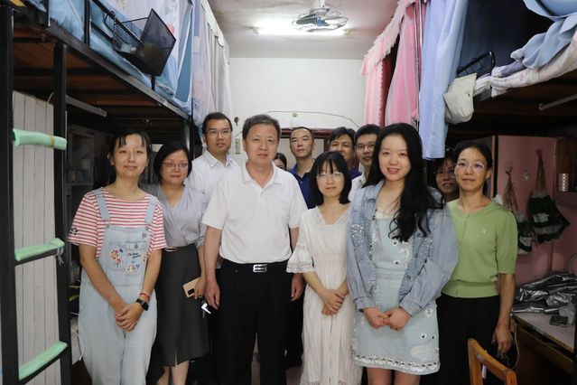 胡兴一行到西区1栋学生宿舍走访慰问了学院2023届毕业生,与毕业生亲切交流,详细询问同学们的毕业去向及未来计划,了解同学们就业中的急难愁盼问题,并现场进行就业指导。