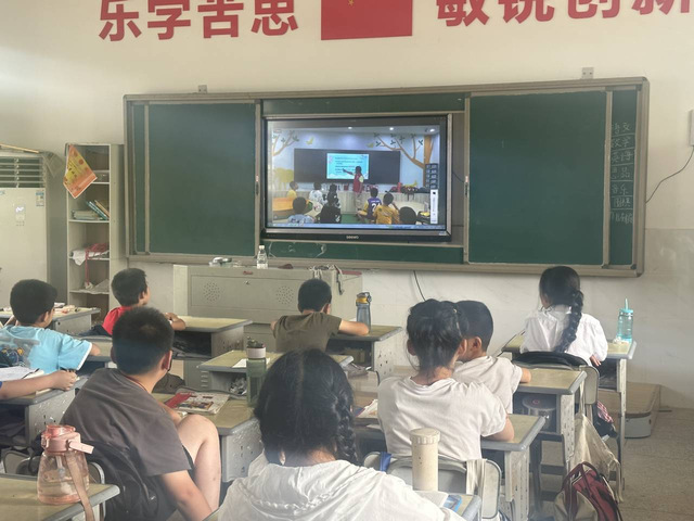 图为小朋友认真观看直播。通讯员王悦供图