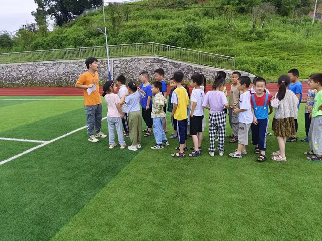 (通讯员杨嘉晨)2023年7月,湖北第二师范学院计算机学院微尘出行志愿服务队于湖北省黄冈市浠水县第四实验小学快岭校区开展了为期一个月的暑期三下乡支教活动。活动期间,在教学上,我们不仅注重学术教育,还注重体育教育。通过组织各种体育课程,如足球课、篮球课、羽毛球课、乒乓球课等等,学生们既锻炼了身体,也培养了团队合作和竞争意识。通过体育课程,学生们不仅享受运动的快乐,还培养了健康的生活方式和积极的生活态度。体育教育让学生们更加健康和自信,也让学生们感受到体育的乐趣及其对身心健康的重要性。