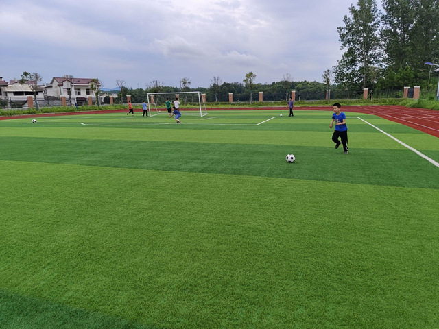 图为学生在足球场上蓄力踢球。通讯员杨嘉晨摄