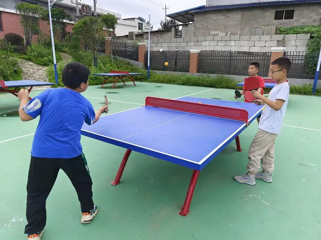 图为体育课上学生开心地打乒乓球。通讯员杨嘉晨摄