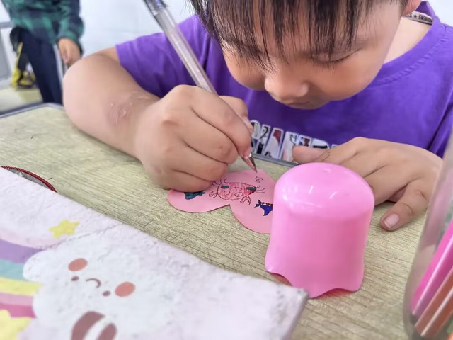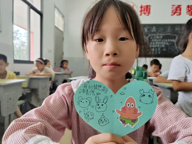 (通讯员杨嘉晨)2023年7月,湖北第二师范学院“微尘出行”志愿服务队在黄冈市浠水县第四实验小学快岭校区进行为期一月的支教活动。7月21日,队员为学生们开展了美术课,并且为学生们准备了爱心画纸、动画贴纸,学生们选择了自己喜欢的颜色的画纸和喜欢的角色的贴纸。在老师为学生讲解完绘画技巧后,学生们在画纸上书画,并且写上了自己的梦想。
