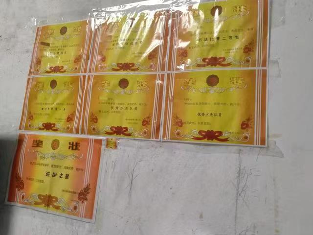 (图为学生得的满墙奖状)