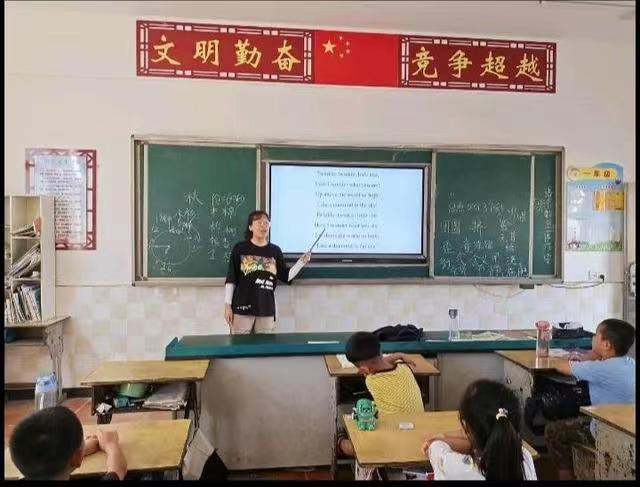 (图为志愿者给学生们上课)
