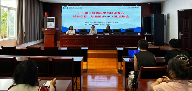 本网讯(通讯员:龚希 刘利敏)9月14日中午,计算机科学与技术专业在实验楼二楼报告厅对本专业2022级本科生开展培养目标、毕业要求宣讲,提升专业认知。计算机学院院长、专业负责人杨莉、教学副院长杨鹤、系主任刘利敏出席本次活动, 本专业2022级全体本科生参与学习。