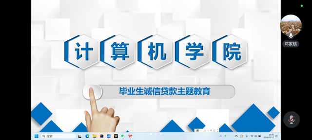 本网讯(通讯员 阮红畅)为引导毕业生树立正确的助学贷款观念,提升诚信意识,杜绝不良贷款行为的发生,帮助毕业生更好了解助学贷款具体事项。计算机学院于2024年5月17日晚上19:30开展线上会议,进行毕业生诚信贷款主题教育,会议进程包括大学生贷款政策宣讲、云闪付还款指南介绍、未及时还款的负面影响三个方面,学生工作办公室主任邓家桃担任本次会议主持人,2020届各班级资助委员参加会议。