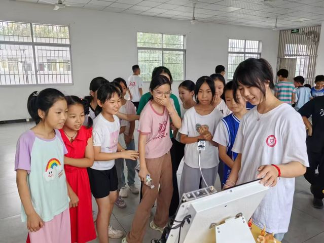 在体验营现场,一系列AI智能设备和应用吸引了众多师生的目光:会握手的机械犬、会战斗的机械车、能识别人年龄和识别物体的心理测验机器、能进行对战的机甲等,让在场的师生们深切感受到了科技的力量,一度将活动推向了高潮。在“沉浸式”和“互动式”的体验过程中,师生们纷纷表示,这不仅是一场科技盛宴,更点亮了乡村儿童的科技梦想。