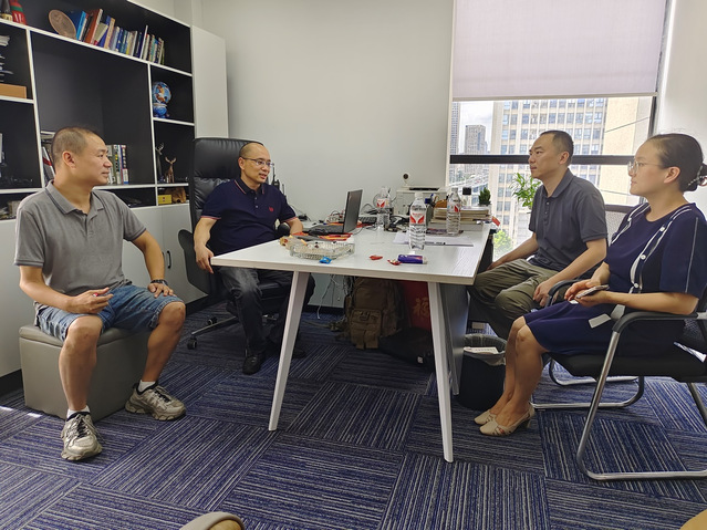 陈宇一行在武汉网盾科技有限公司总经理祝华的带领下参观了企业,对企业发展历程、业务开展情况、企业用人需求等方面进行深入了解。
