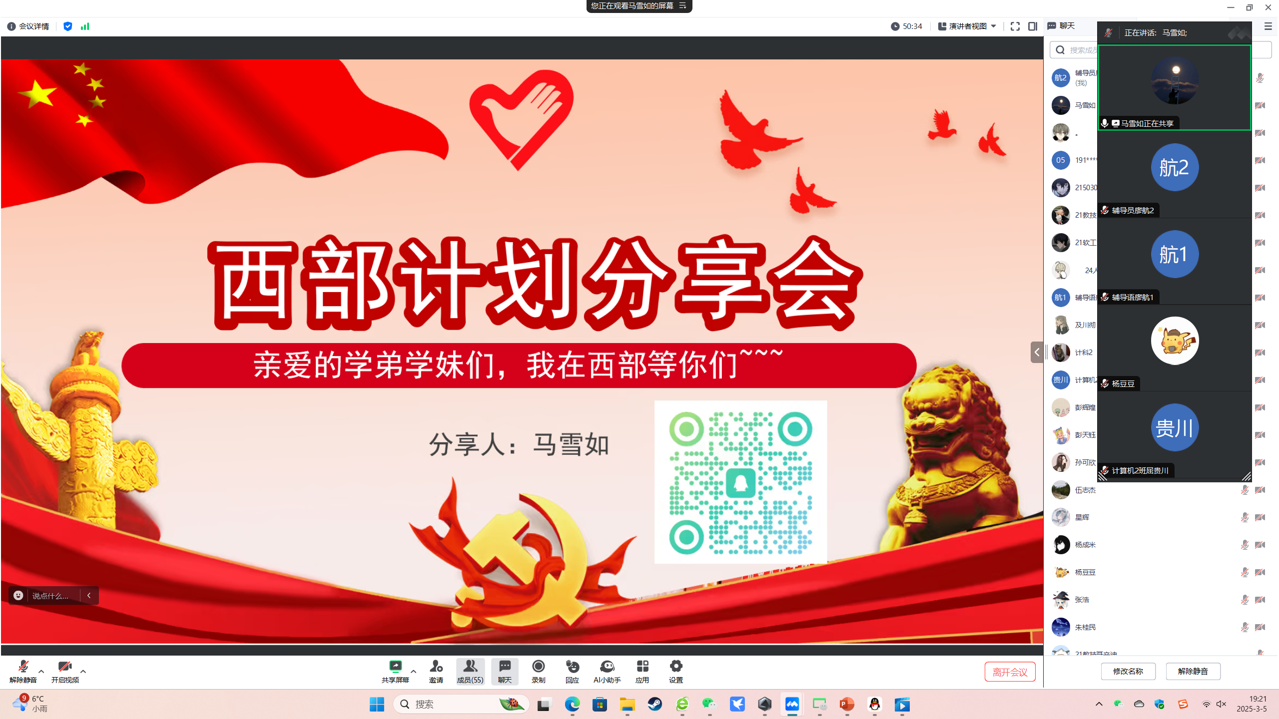 本网讯(通讯员 冯诚)为鼓励青年学子服务国家战略,投身西部基层建设,计算机学院于3月5日举办了就业指导主题班会暨2025年大学生志愿服务西部计划线上宣讲会。计算机学院党委副书记王敏出席会议,2024届西部计划志愿者代表马雪如、屈贵川应邀担任主讲人,会议由计算机学院大学生志愿服务西部计划工作负责人廖航主持。