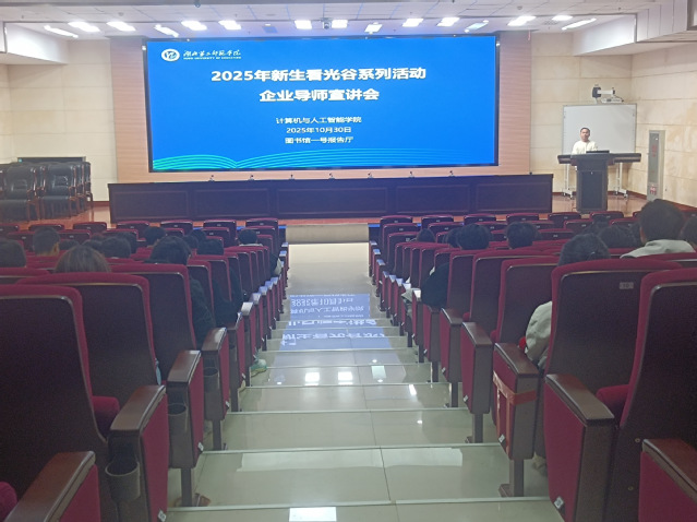 (通讯员:刘辰)10月30日晚,学校图书馆一号报告厅座无虚席,计算机与人工智能学院新生齐聚“2025年新生看光谷系列活动·企业导师宣会”,以聆听ICT行业前沿之声,锚定专业成长与职业发展航向。