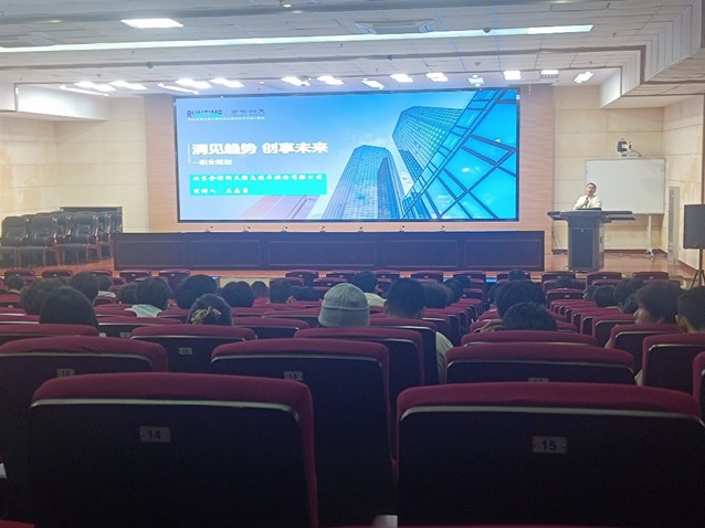 宣讲现场,武汉金信润天信息技术有限公司培训部专业负责人兰志勇以“洞见趋势 创享未来”为引,从ICT产业变革趋势、人才需求图谱、技术发展方向、岗位发展路径、就业前景与学习建议五维展开内容。首先,导师抛出“什么是ICT?”的问题,激活同学们的思维。其次,主讲人展示当下行业图景,呈现“卷学历、卷技能、卷经验”的就业新形势。宣讲中,导师以技术金字塔为喻,梳理WEB前端、人工智能、云计算等技术分支,铺展从初级工程师到CTO的成长阶梯,强调“多花时间、多总结、多练习、多思考、多应用”的学习要诀。现场互动间,思辨火花与青春朝气交织,前沿知识与成长困惑碰撞,构成一堂生动的职业启蒙课。