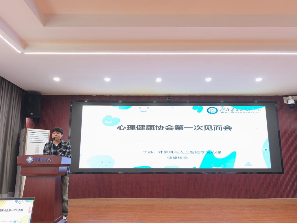 随后,心协指导老师焦彦超登台发言。他首先对新成员的加入表示热烈欢迎,随后围绕协会“关注心理成长、传递温暖关怀”的核心宗旨展开讲解,结合过往计算机与人工智能学院服务案例,生动展现协会在校园心育工作中的作用。“希望大家能在这里既能收获伙伴,也能发挥所长,用专业与热情为同学们的心理健康保驾护航。”老师的话语不仅为新生清晰指引方向,更激发了大家参与工作的热情。