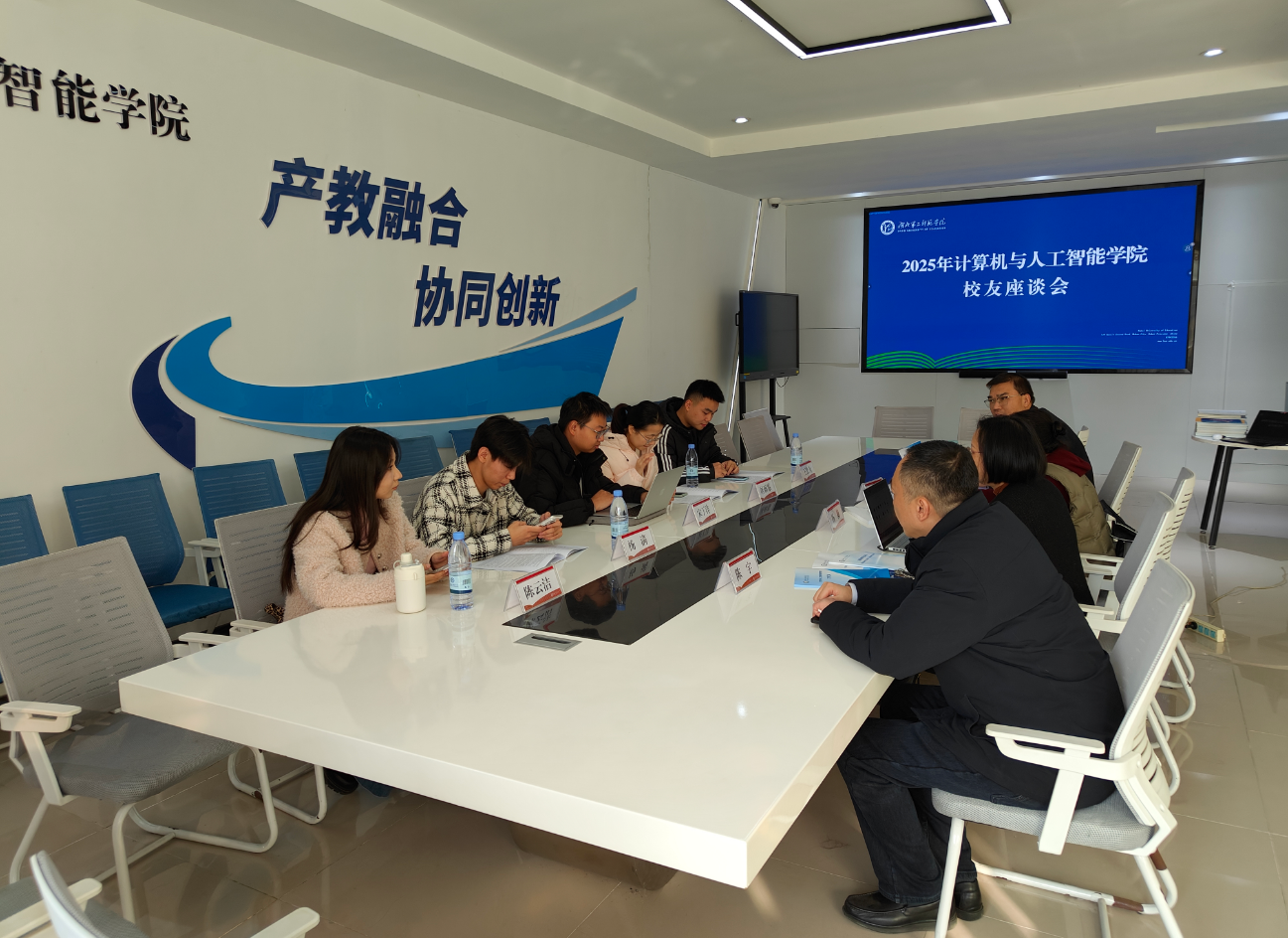 2025年12月6日,湖北第二师范学院计算机与人工智能学院校友座谈会在S4100圆满召开。学院党委书记陈宇、院长杨莉、党委副书记王敏、副院长王海军出席会议,与返校校友代表欢聚一堂,共忆青春岁月,共商发展大计。